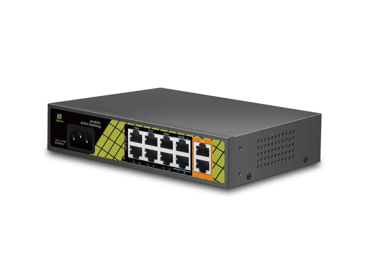 - 2*1000Mbps Uplink portok + 8*100Mbps PoE portok