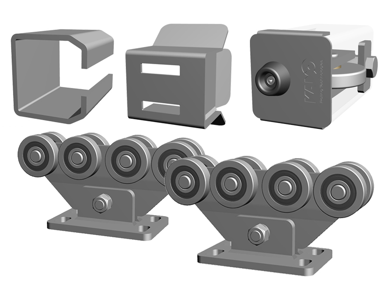 KANO 2db 8-ös görgőcsoport, 1db felfutó görgő, 1db fogadó, sín nélkül