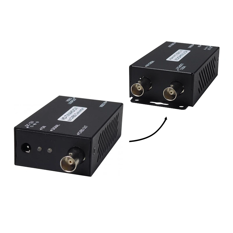 SC&,T Videojel átalakító CVBS-re, AHD/HD-TVI/HD-CVI video bemenet, áthurkolt AHD/HD-TVI/HD-CVI vagy átalakított CVBS kimenet, DIP kapcsolóval, támogatott AHD/HD-TVI felbontások: 720P(25/30Hz) / 720P(50/60Hz / 1080P(25/30Hz), 12Vdc (350mA), 230Vac adapterrel