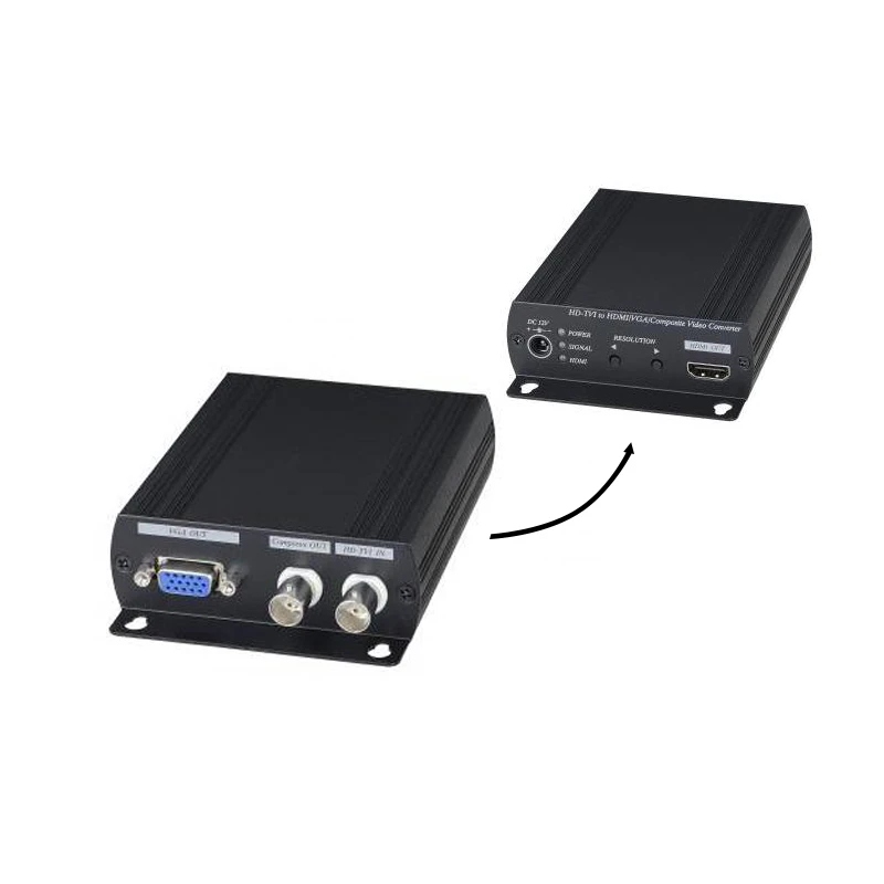 SC&,T Videojel VGA/HDMI átalakító, BNC (AHD/HD-TVI/HD-CVI/CVBS) video bemenet, áthurkolt AHD/HD-TVI/HD-CVI vagy átalakított CVBS kimenet, VGA/HDMI kimenet, 2 csatornás AHD switcher funkció, támogatott HDMI/VGA felbontások: 480P/576P/720P/1080i/1080P, támogatott frekvencia: 50/60/Hz, támogatott AHD/HD-TVI/HD-CVI felbontások: 720P(25/30Hz)/720P(50/60Hz)/1080P(25/30Hz), 12Vdc (500mA), 230Vac adapterrel
