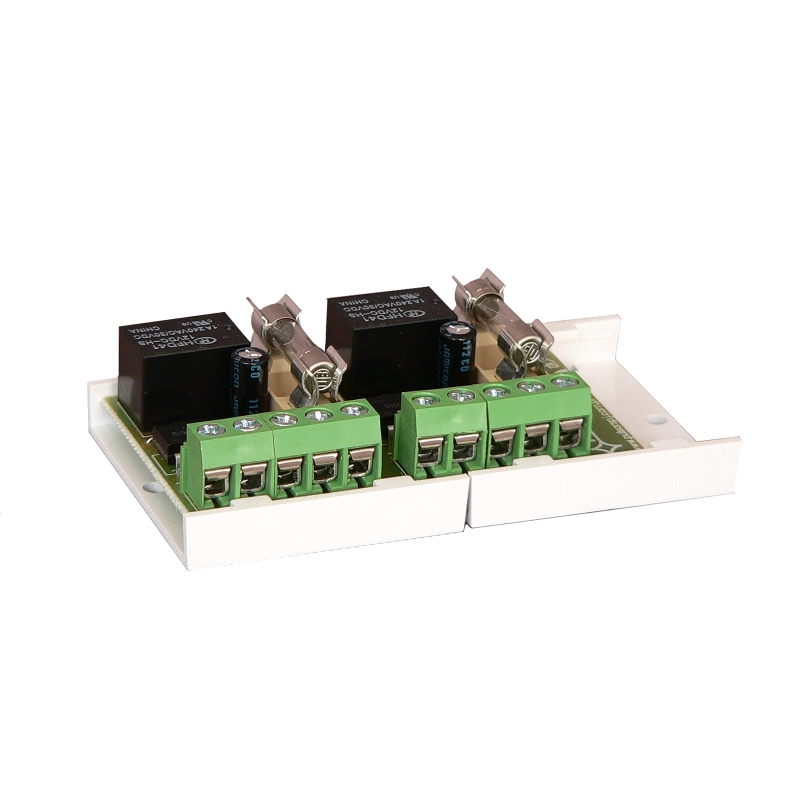 PULSAR Relémodul, bemenet 10~16 Vdc vagy 10~13 Vac, vezérlőáram 30mA@12Vdc, 2 db váltóérintkező, érintkezők maximális terhelése 30 Vdc/ 50Vac 1A, 1.5 A üvegcsőves biztosíték, csavaros vagy öntapadós rőgzítés, méret 80x20x43 mm, működési hőmérséklet -10~+40°C, CE, RoHS