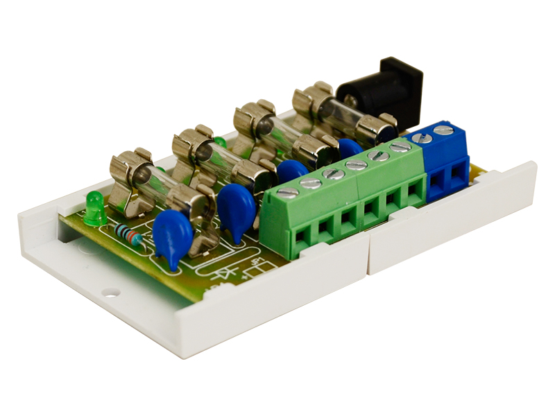 PULSAR FTA biztosíték modul.Feszültség: 10÷30VDC. Kimeneti feszültség: 4x0,5A - TOPIC (4x 0,3A, 4x 1,0A - TOPIC - nem tartozék). Vezeték keresztmetszet: max. 1mm2. Bemenetek/kimenetek száma: 2/4. Védelem: SCP, OLP*, túlfeszültség védelem. Kiegészítő funkciók:- tápfeszültség bemenet - DC 5.5/2.1 aljzat. - LED kijelzés. Rögzítési opciók: rögzítő keret csavarral vagy kétoldalas ragasztóval. Méret: Mé=80, Szé=43, Ma=20 (+/-2mm). Megjegyzés:- szétosztó/kötő modul. - rögzíthető PSD (asztali) sorozatú tápegységeken