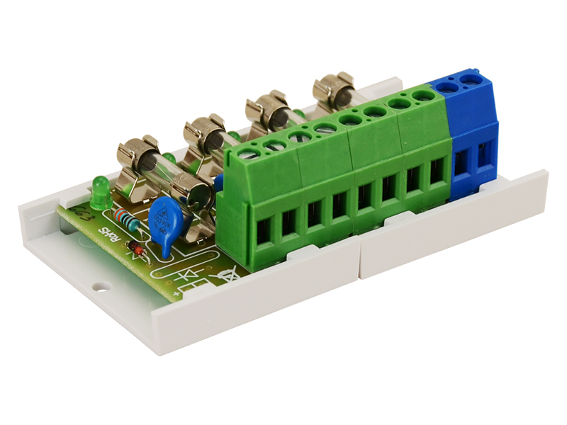 PULSAR FTA biztosíték modul. Feszültség: 10÷30VDC. Kimeneti feszültség: 4x2A .Vezeték keresztmetszet: max. 2,5mm2. Bemenetek/kimenetek száma: 1/4. Védelem: SCP, OLP*, túlfeszültség védelem. Kiegészítő funkciók: LED kijelzés. Rögzítési opciók: rögzítő keret csavarral vagy kétoldalas ragasztóval. Méret: Mé=80, Szé=43, Ma=27 (+/-2mm). Megjegyzés: szétosztó/kötő modul