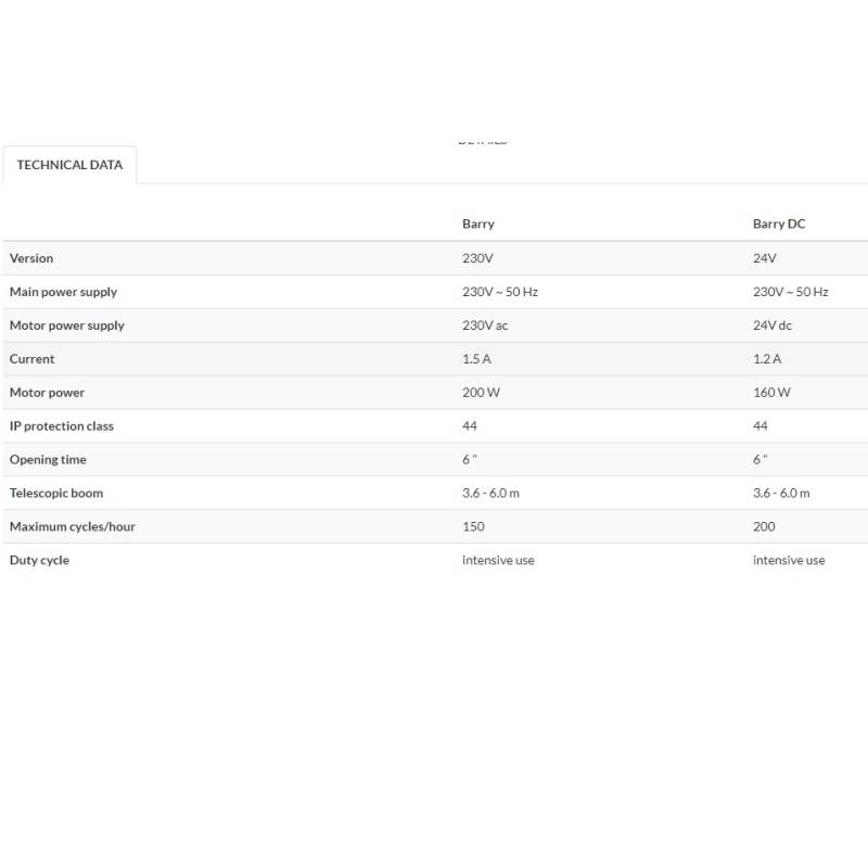A PROTECO Barry sorompó egy professzionális, olasz gyártmányú megoldás intenzív használatra tervezve. Ideális választás ipari, kereskedelmi vagy nagy forgalmú területek számára, ahol megbízható és tartós sorompórendszerre van szükség.
