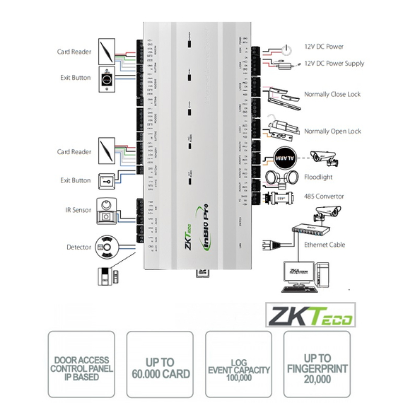 ZKTeco INBIO-PRO460 Green Label – 4 ajtós, kétirányú biometrikus beléptető vezérlő központ
