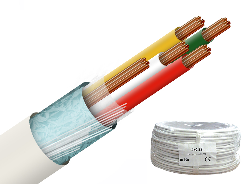 - 4 eres kivitel: A kábel négy, egymástól jól elkülönített, sodrott réz vezetőt tartalmaz, melyek mindegyike 0,22 mm² keresztmetszetű. Ez az elrendezés lehetővé teszi többféle jel vagy tápellátás egyidejű továbbítását.