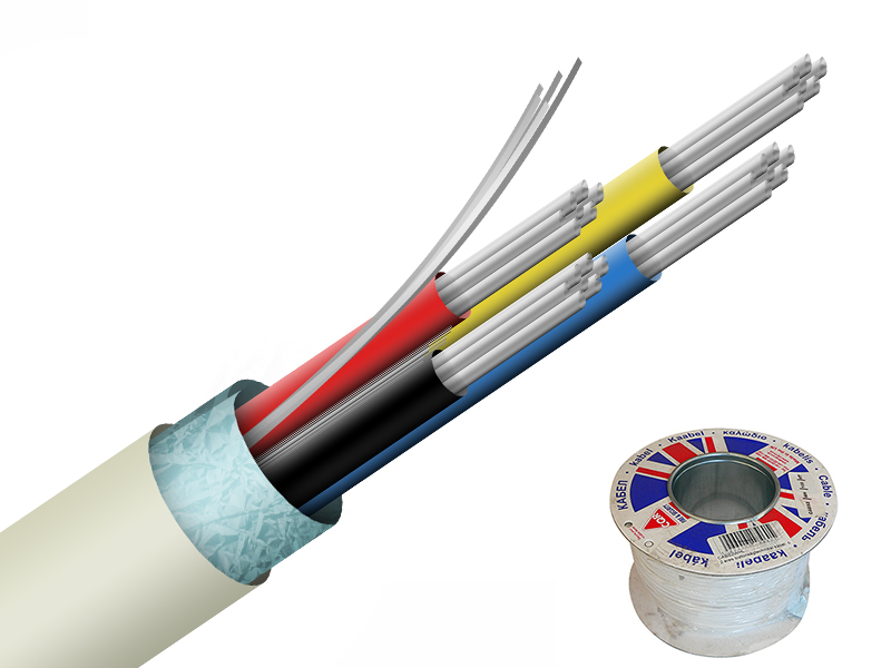 CQR Biztonságtechnikai kábel, 4-eres ,ónozott sodrott réz erek, alumíniumfólia árnyékolás és földvezeték, vékony fehér PVC köpeny, rendkívül könnyű blankolni és forrasztani, nedves, párás helyeken (templom, pince, stb.) is használható, a rézreve jelenség elkerülésére, évekkel hosszabb élettartam