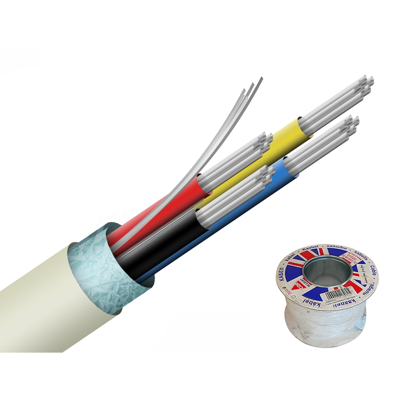 CQR Biztonságtechnikai kábel, 4-eres ,ónozott sodrott réz erek, alumíniumfólia árnyékolás és földvezeték, vékony fehér PVC köpeny, rendkívül könnyű blankolni és forrasztani, nedves, párás helyeken (templom, pince, stb.) is használható, a rézreve jelenség elkerülésére, évekkel hosszabb élettartam