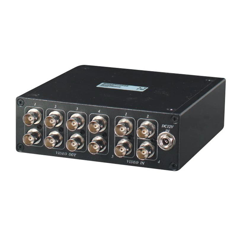 SC&T Videojel osztó, 4 csatornás 8-as, koax-os rendszerekhez, 8 (2x4) videojel kimenet, 12Vdc, 230Vac adapterrel