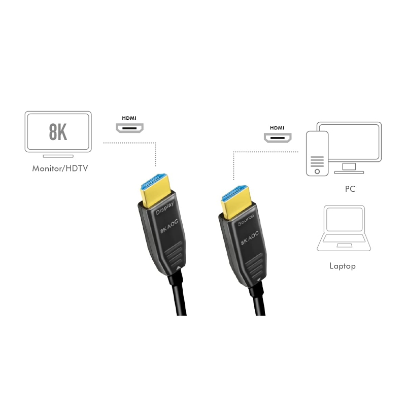 Aktív optikai hibrid kábel szál/réz kábel kombinációval az elektromágneses hatások csökkentése érdekébenFelbontás: (7680x4320) - Adatátviteli sebesség: Ultra HD akár UHD 8K/60Hz-ig (7680x4320): A HDMI 2.1 Ultra High Speed-nek felel meg.Csatlakozás 1: HDMI-A (dugó) - Csatlakozás 2: HDMI-A (dugó)Támogatás: Támogatott: EDID, HDCP, ARC, HDR, CEC, 3D - Támogatott: Multistreaming audio/video és 32 csatornás/1536 kHz-es hangformátum - támogatott: Dolby Digital, DTS, MPEG, DVD audio, SACD, Dolby Digital Plus, True HD és dts-HD hangadatokÁrnyékolt - Fém ház - Szín: Fekete - Aranyozott csatlakozók - Kábelhossz: 15 m.
