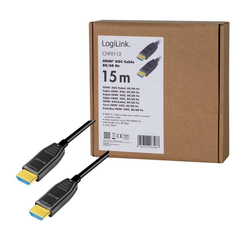 LogiLink AOC HDMI 2.1 -> HDMI 2.1 M/M video kábel 15m fekete