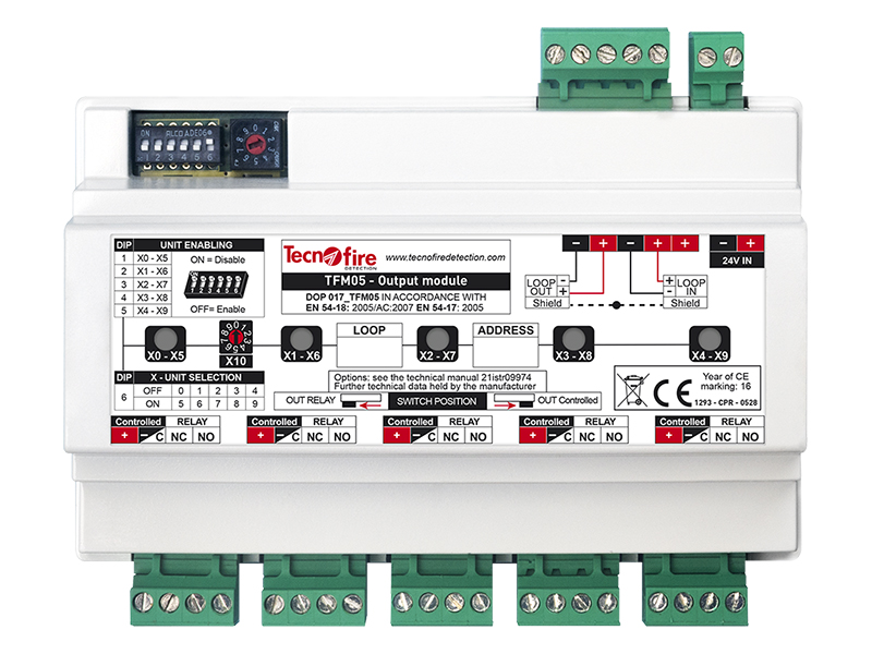 A TECNOFIRE címezhető modul egy professzionális tűzjelző rendszerkiegészítő, amelyet kifejezetten tűzvédelmi rendszerekhez terveztek. A modul fejlett funkcionalitása révén lehetővé teszi akár öt különálló fizikai vagy logikai egység felügyeletét és vezérlését, miközben teljes kompatibilitást biztosít a Fire-Speed protokollal.