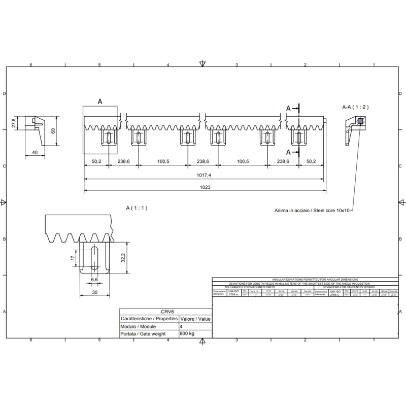 - 1 méteres szegmensek: A fogasléc 1 méteres darabokban érkezik, ami megkönnyíti a szállítást és a telepítést. A moduláris kialakítás lehetővé teszi a kapu méretéhez történő egyszerű igazítást.