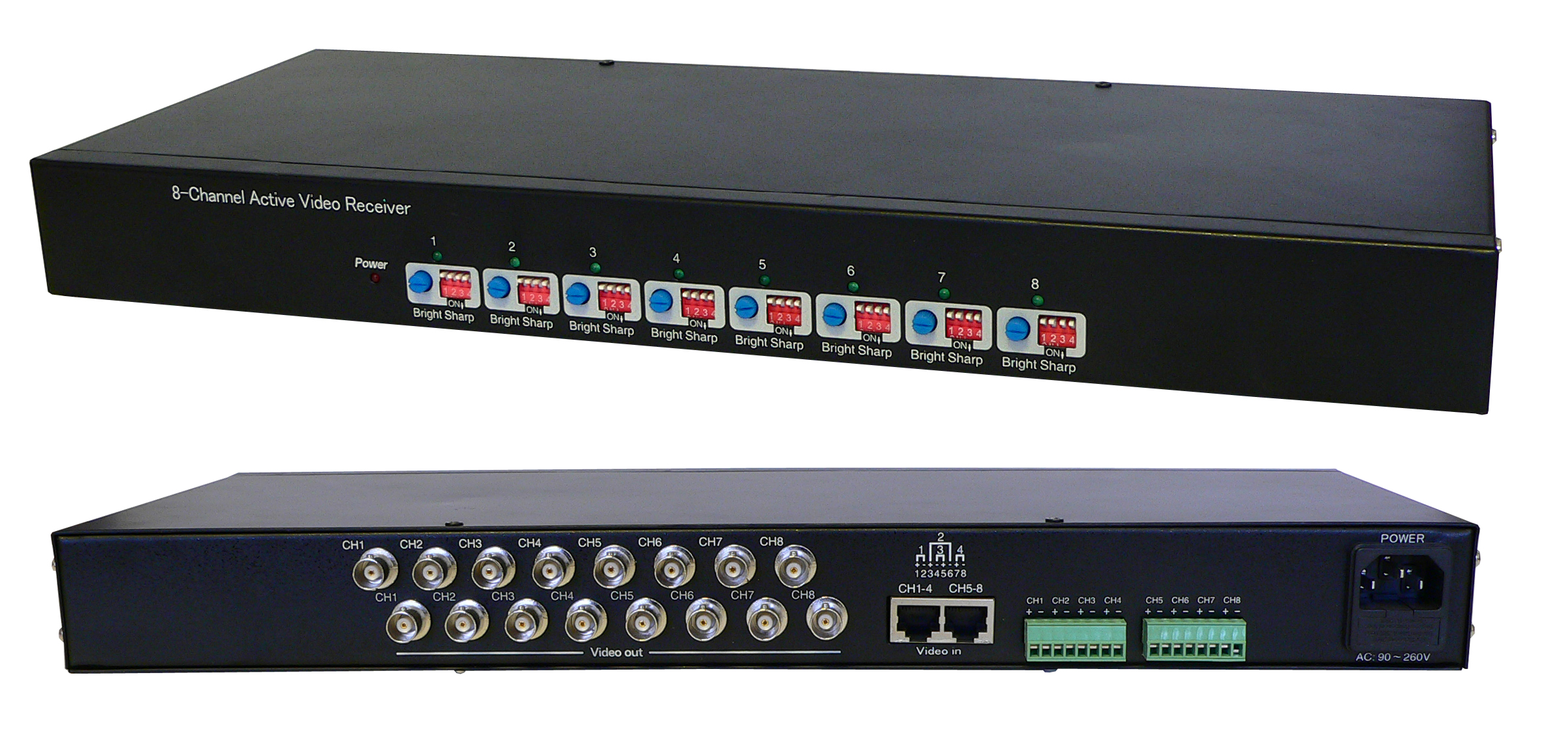 - 8-csatornás kialakítás: Egyszerre akár 8 különböző videójel fogadására képes, így ideális többkamerás rendszerekhez.