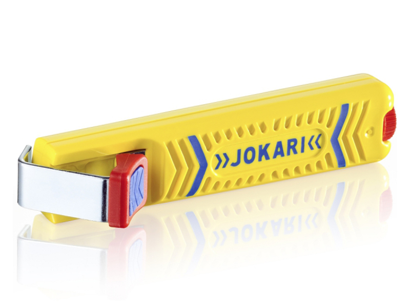 JOKARI Egyedülálló csúszás gátolt markolat, 4-16 mm R standard hengeres kábelek szigetelésének eltávolítására, Állítható vágásmélység, Automatikus forgó penge, Titán-nitrid bevonatú pengék, 1 db tartalék pengével-GS tanúsítvánnyal