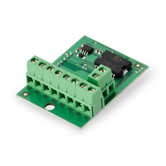 ELDES Programozható kimeneti bővítőmodul, ESIM264/364/384 vezérlőpanelekhez, 8 db OC kimenet, max. 30 Vdc / 500 mA, tápfeszültség 10~24 Vdc, méret 40x55x15 mm, működési hőmérséklet -20°C+55°C