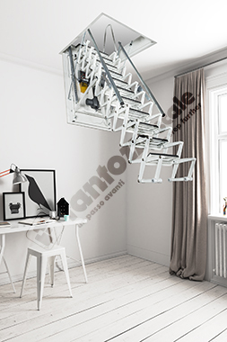A FANTOZZI padlásfeljáró PREMIUM egy professzionális, motoros működtetésű padláslépcső, amelyet kifejezetten ipari és magas szintű lakossági felhasználásra terveztek. A termék kiemelkedő minőségű anyaghasználata, fejlett technológiai megoldásai és biztonsági funkciói révén ideális választás olyan szakemberek számára, akik megbízható, hosszú élettartamú és esztétikailag is kifogástalan megoldást keresnek.
