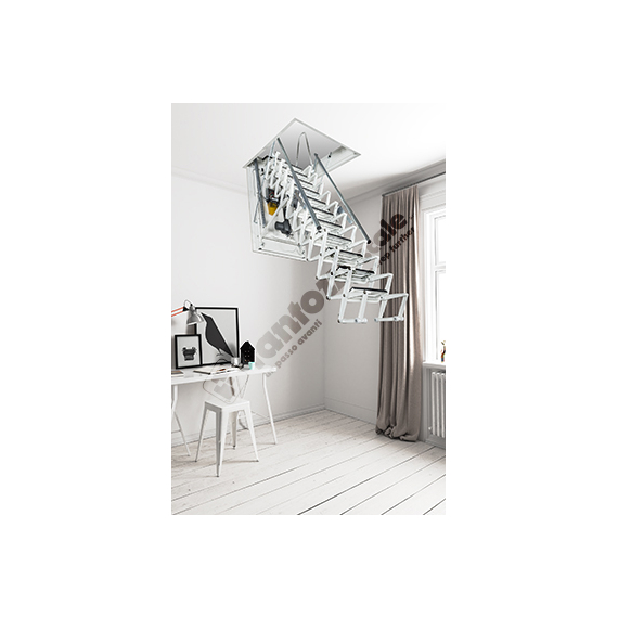 A FANTOZZI padlásfeljáró PREMIUM egy professzionális, motoros működtetésű padláslépcső, amelyet kifejezetten ipari és magas szintű lakossági felhasználásra terveztek. A termék kiemelkedő minőségű anyaghasználata, fejlett technológiai megoldásai és biztonsági funkciói révén ideális választás olyan szakemberek számára, akik megbízható, hosszú élettartamú és esztétikailag is kifogástalan megoldást keresnek.