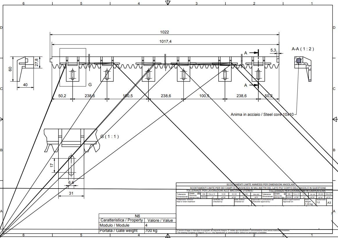 A TIGERMAT Fogaslécet úgy tervezték, hogy megfeleljen a legmagasabb ipari követelményeknek. A fémszál erősítésű műanyag szerkezet garantálja a hosszú élettartamot és a nagy teherbírást, miközben a csendes működés biztosítja, hogy a kapu használata ne okozzon zajterhelést. Az egyszerű telepítés érdekében a fogasléc 6 felfogatási ponttal rendelkezik, így stabilan rögzíthető bármilyen kompatibilis kapuszerkezethez.