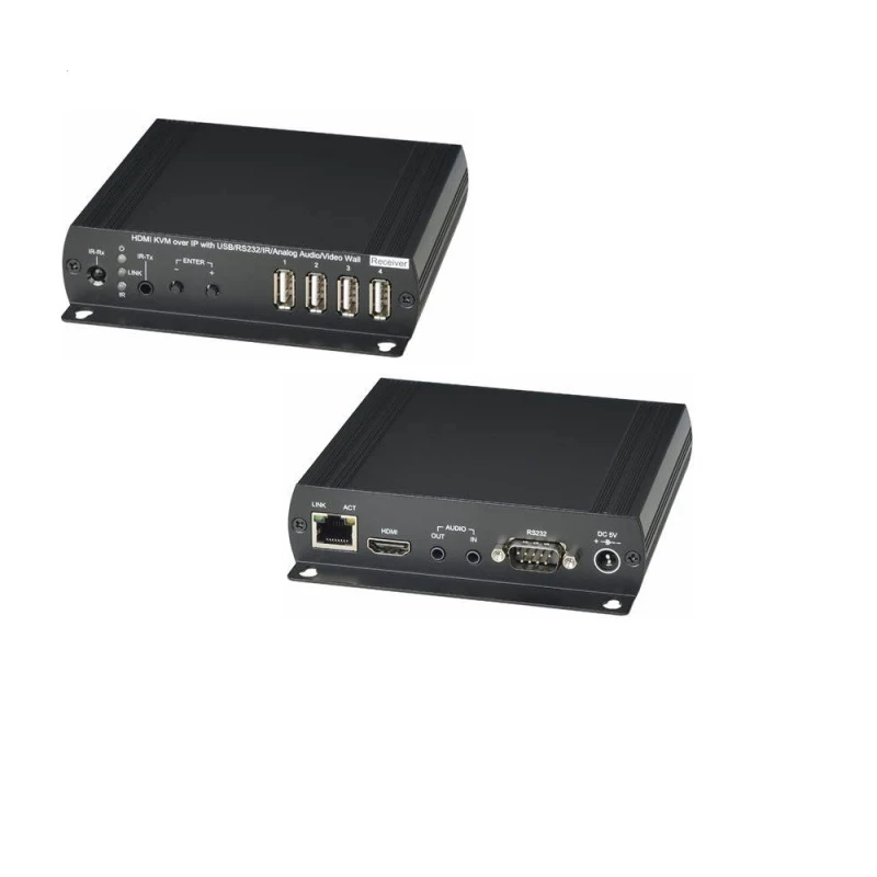 A SC&,T HDMI KVM és USB vevőegység egy professzionális megoldás, amely lehetővé teszi a HDMI jelek, USB perifériák, RS232 kommunikáció és infravörös (IR) jelek továbbítását CAT5 IP hálózaton keresztül. Ez az eszköz ideális választás olyan szakemberek számára, akik megbízható és nagy teljesítményű eszközt keresnek távoli vezérléshez, adatátvitelhez vagy multimédiás alkalmazásokhoz.