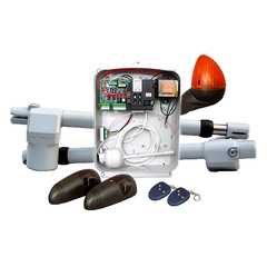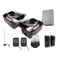 A PROTECO szárnyaskapu mozgató szett ideális megoldást nyújt a családi házak és társasházak szárnyaskapuinak automatizálásához. A szett minden szükséges elemet tartalmaz a telepítéshez, beleértve a motorokat, a vezérlőegységet, a távirányítókat, a fotocellákat és a villogót.