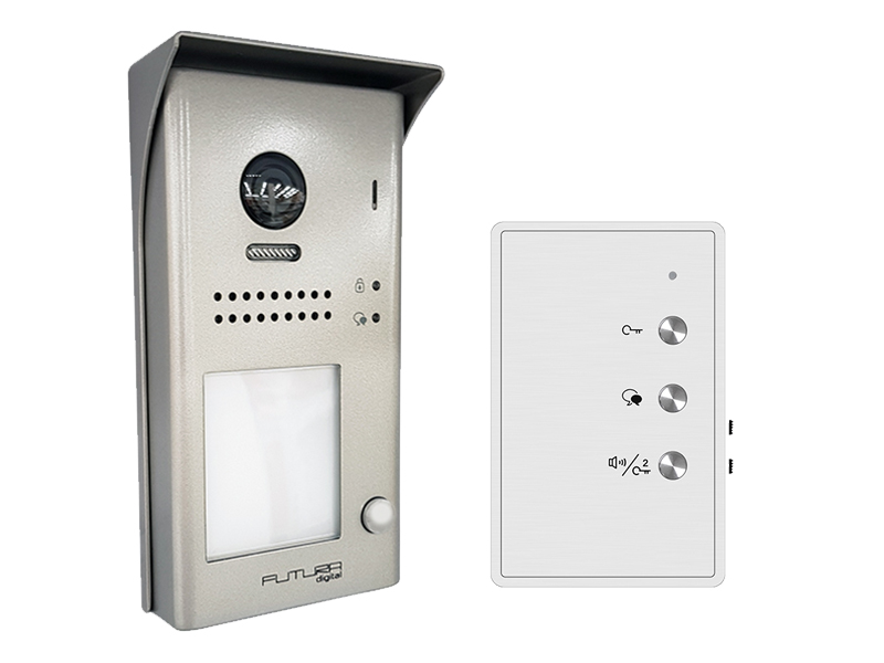 A FUTURA Kaputelefon szett ideális választás családi házak, kisebb irodák vagy üzletek számára, ahol fontos a biztonságos és kényelmes kommunikáció a bejáratnál. A 2 vezetékes kialakításnak köszönhetően a rendszer könnyen telepíthető meglévő infrastruktúrába is.