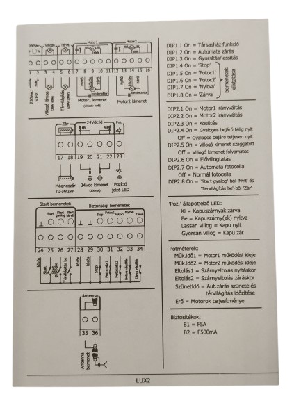FERKAPU Kétmotoros vezérlés, "FITI-433" néven RF vevő bővítőkártyaként külön kapható hozzá mely a beépített csatlakozóra a külön csatlakoztatható.