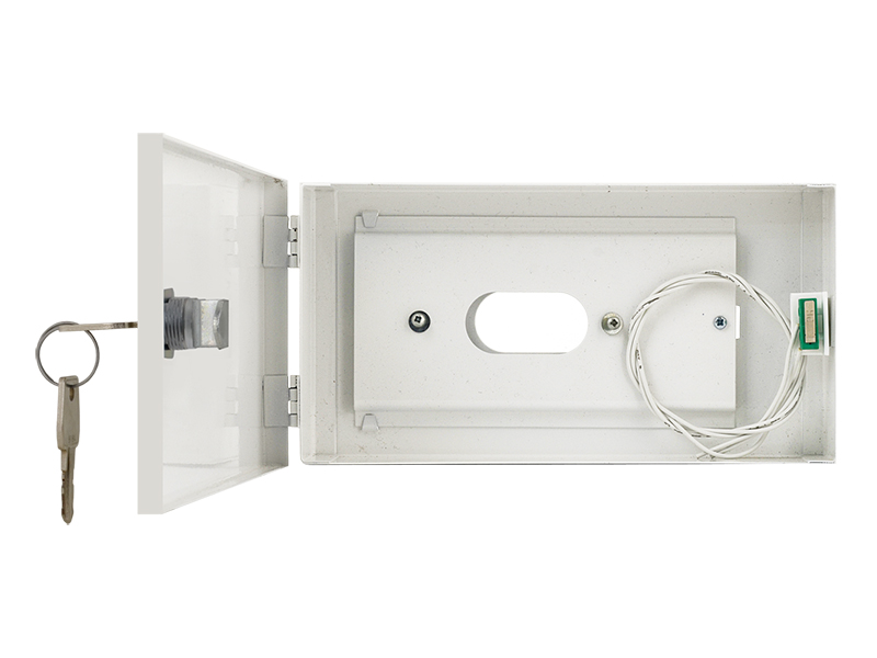 PULSAR kisméretű szabotázsvédett fém doboz, kezelők illetéktelen hozzáférés elleni mechanikus védelme, kompatibilis: Satel CA-4V KLED, CA-6 KLED, CA 10 KLED, CA-64 S, CA-64 SZ, SZW-02, kivehető szerelőlap, kinyitás elleni szabotázsvédelem, mechnanikus zár, 0.7 mm vastagságú acéllemez ház, külső méret: 215x115x40 mm, kezelő max. mérete: 158x105x30 mm, beltéri alkalmazás, fehér szín, működési hőmérséklet -10°C~+40°C