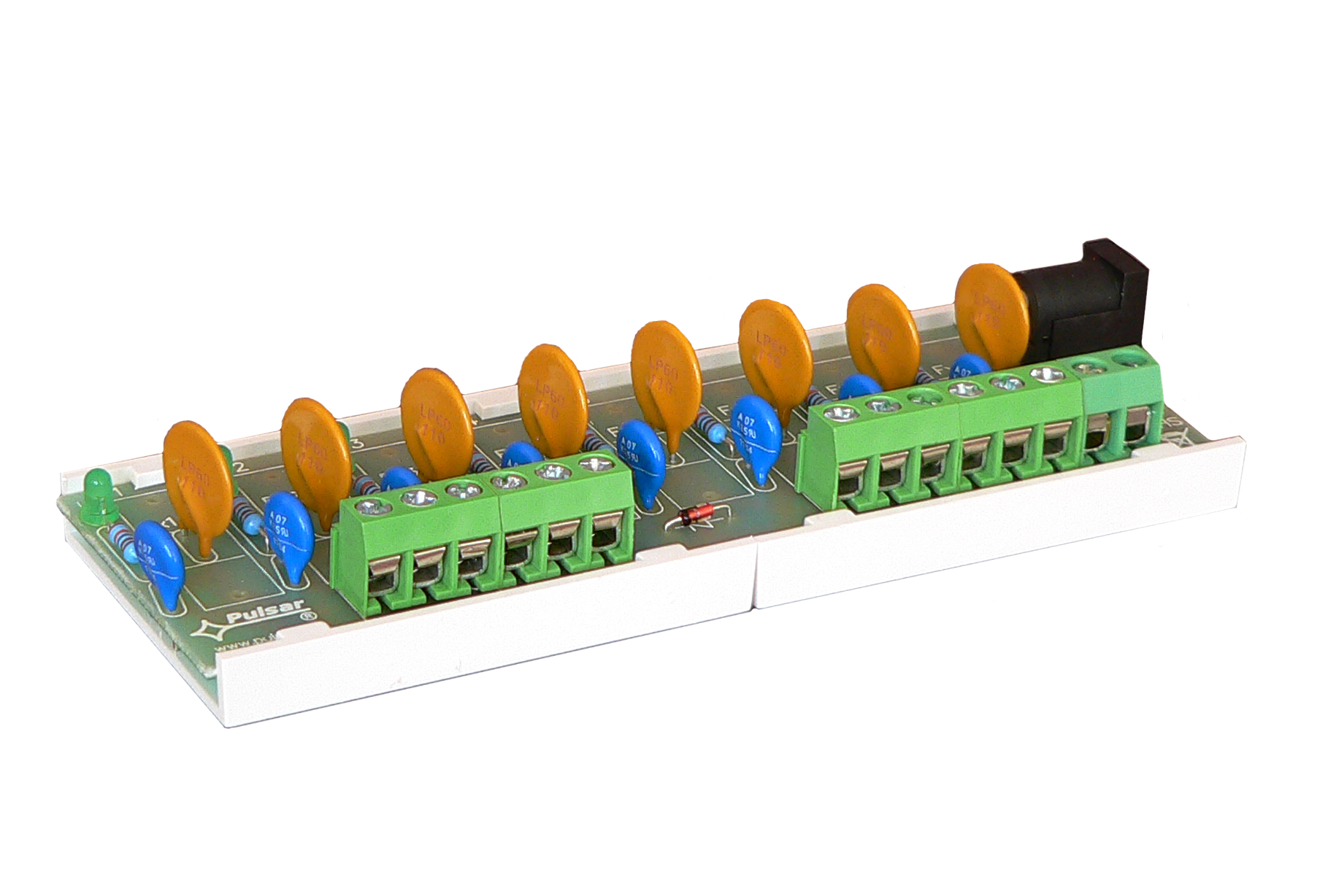 PULSAR LB8/1.0A/PTC biztosíték modul, 10-30VDC tápfeszültség, 8x1.0A - PTC, maximális átmérő: 1mm2, 2 bemenet / 8 kimenet, méret: 124x43x21