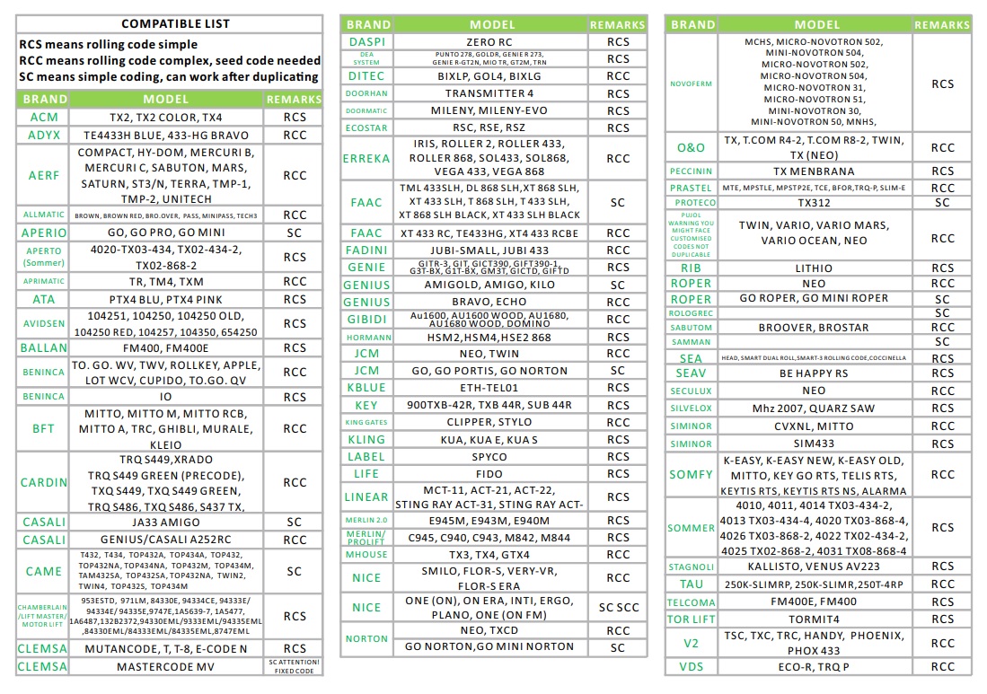 - Kódmásolási funkció: A TIGERMAT képes rögzített kódok, tanulási kódok és akár 60 különböző gördülő kód/márka másolására, ami rendkívül hasznos a szakemberek számára. 1527/2260/2262/2264/HT12E/HTP60B/5326/HCS301/HCS300, stb