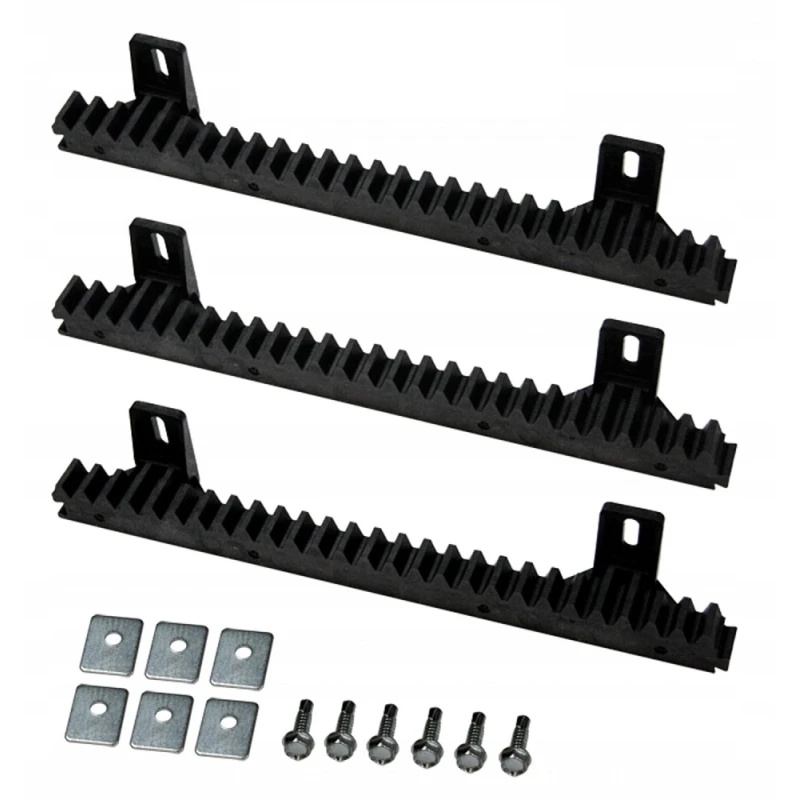 - 3 db 33 cm-es fogasléc: Kiváló minőségű, strapabíró anyagból készült fogaslécek, amelyek biztosítják a sima és megbízható működést. A fogaslécek mérete optimális a legtöbb szabványos alkalmazáshoz, és könnyen illeszthetők egymáshoz a hosszabb rendszerek kialakításához.