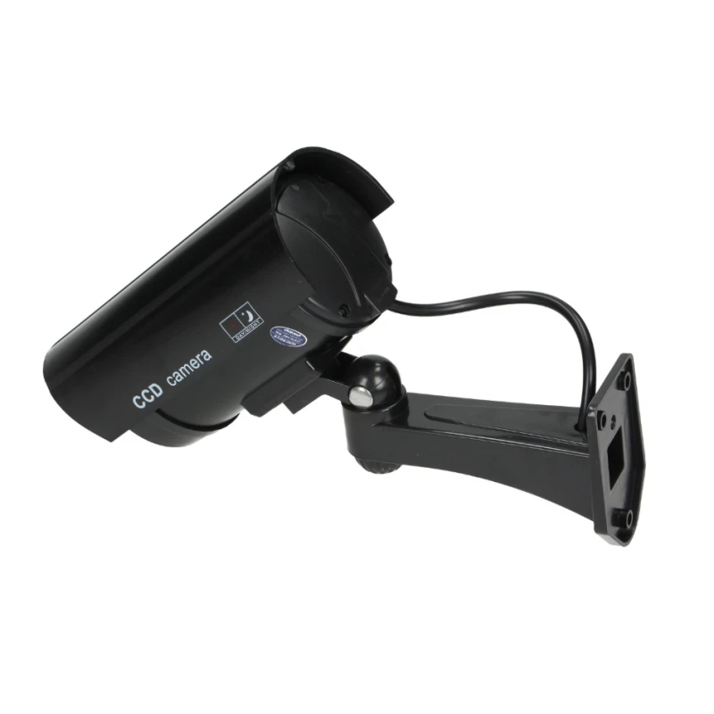 - Aktív állapot jelzése: A villogó piros LED élethűen szimulálja a működésben lévő biztonsági kamerákat.