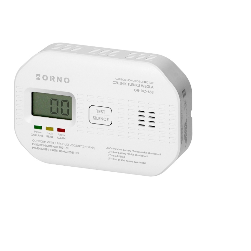 ORNO ORDC638 – Prémium szén-monoxid vészjelző LCD kijelzővel (10 év élettartam)