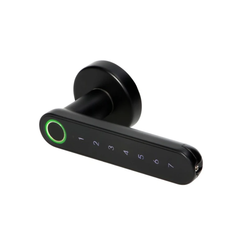 - Érintőbillentyűzet: A fogantyú érintőbillentyűzetének köszönhetően a felhasználók egyszerűen megadhatják a saját PIN-kódjukat az ajtó kinyitásához.