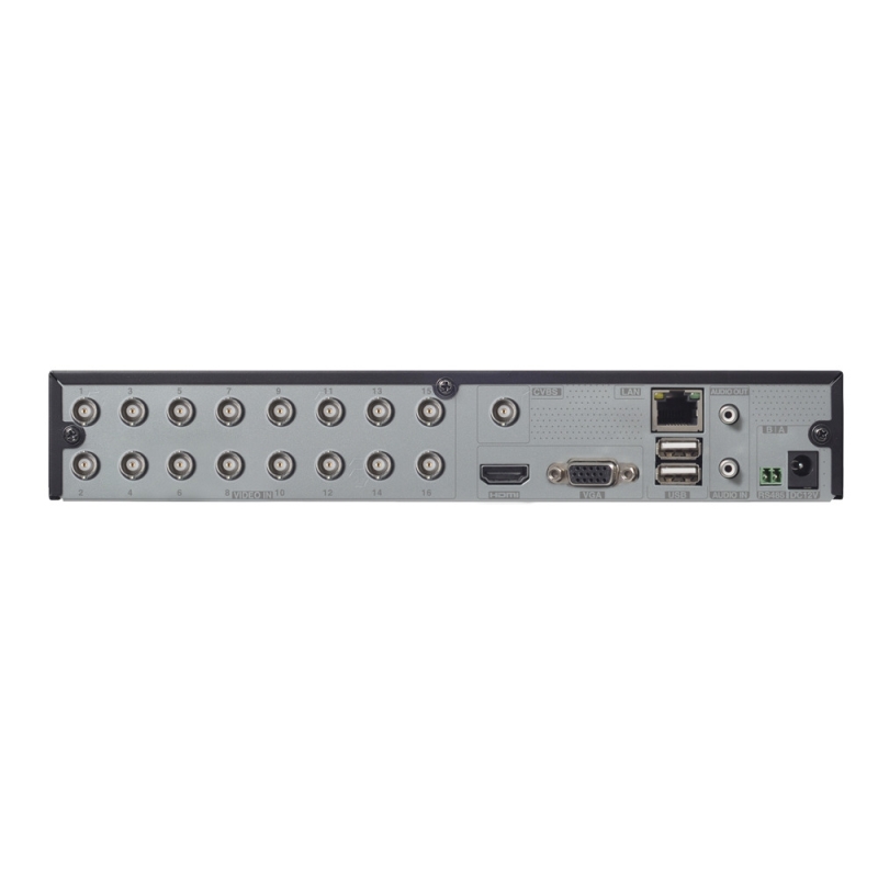 Videó bemenet 16 × BNC (HD-TVI/AHD/CVI/CVBS támogatás)