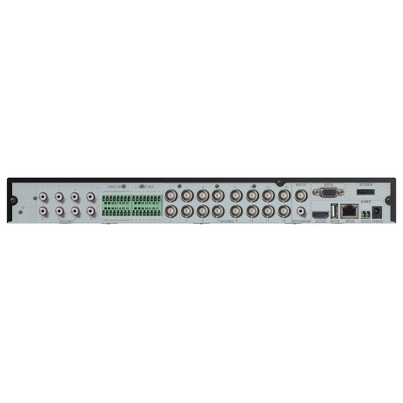 Videó bemenet 16 × BNC (AHD/TVI/CVI/CVBS), 8 × IP (max. 24 csatorna)