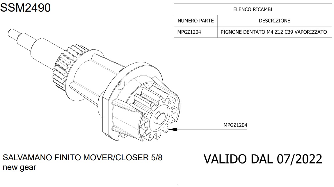 PROTECO Eredeti Proteco alkatrész MOVER Hajtótengely feloldó rendszerrel és hajtóművel. SSM2490 2020 júniusa után gyártott meghajtókhoz. (NEW GEAR jelölés). A "régi" változathoz nem megfelelő. fogaskerék típusa: MPGZ1204