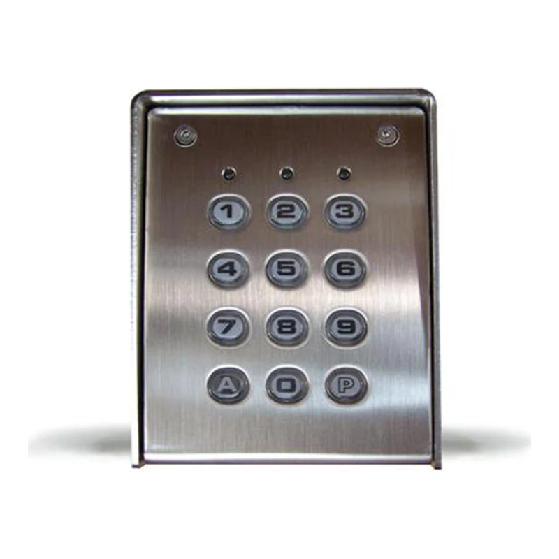 PROTECO Kódzár, 12-24V-os, rozsdamentes acél tokkal, vandálbiztos. Fém kulcsokkal. 60 kód memória 1A és 5A kimeneti relék, olasz, 2 év garancia