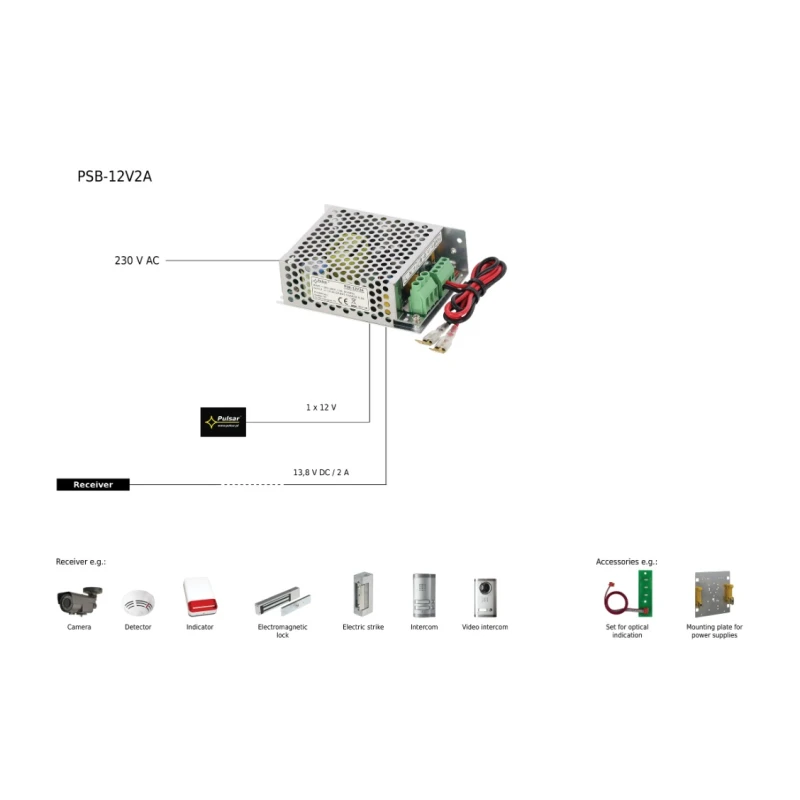 PULSAR Kapcsolóüzemű Tápegység Akkumulátortöltővel – 13.8 VDC / 2.5 APULSAR Kapcsolóüzemű Tápegység Akkumulátortöltővel – 13.8 VDC / 2.5 A