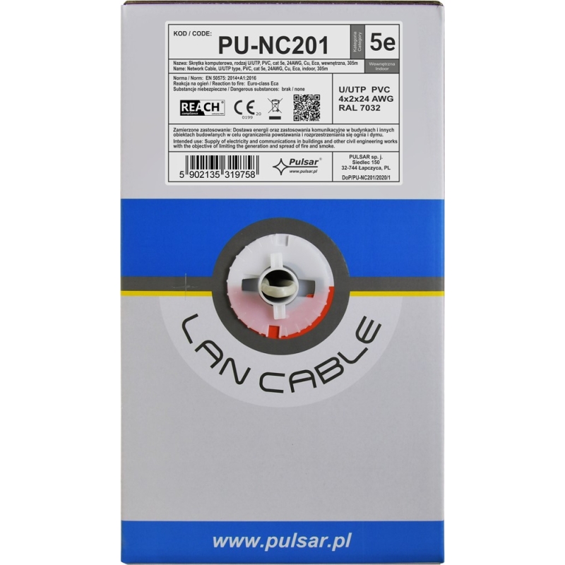 PU-NC201 Twisted pair kábel U/UTP Cat 5e 24AWG Cu Eca beltéri 305m