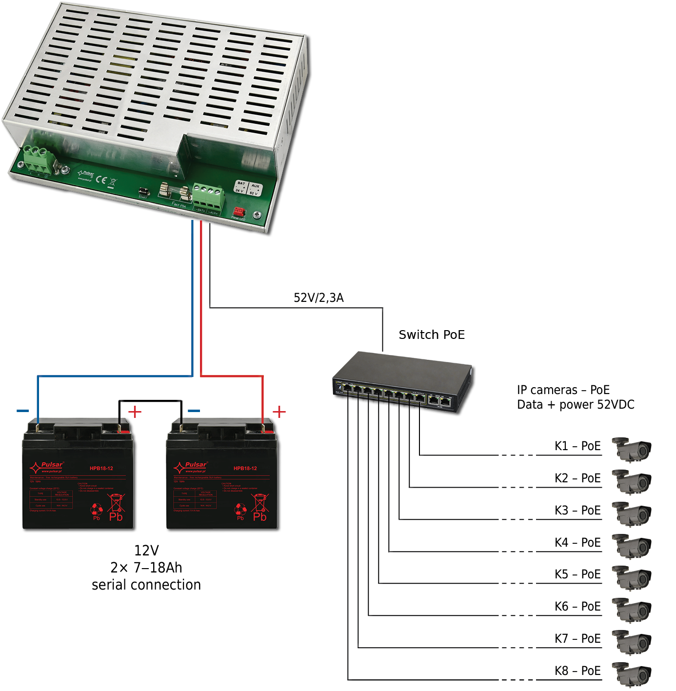 PULSAR Tápegység POE-s Akkumulátortöltővel