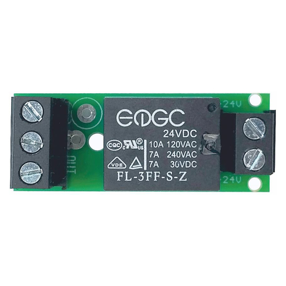 A relé modul 24V DC vezérlőfeszültség hatására aktiválódik, és egy galvanikusan leválasztott kontaktust zár vagy bont, amelyen keresztül akár 240V AC feszültségű, maximum 7A áramerősségű terhelés kapcsolható. Ez lehetővé teszi a kisfeszültségű vezérlés és a nagyobb teljesítményű fogyasztók közötti biztonságos és megbízható kapcsolatot.