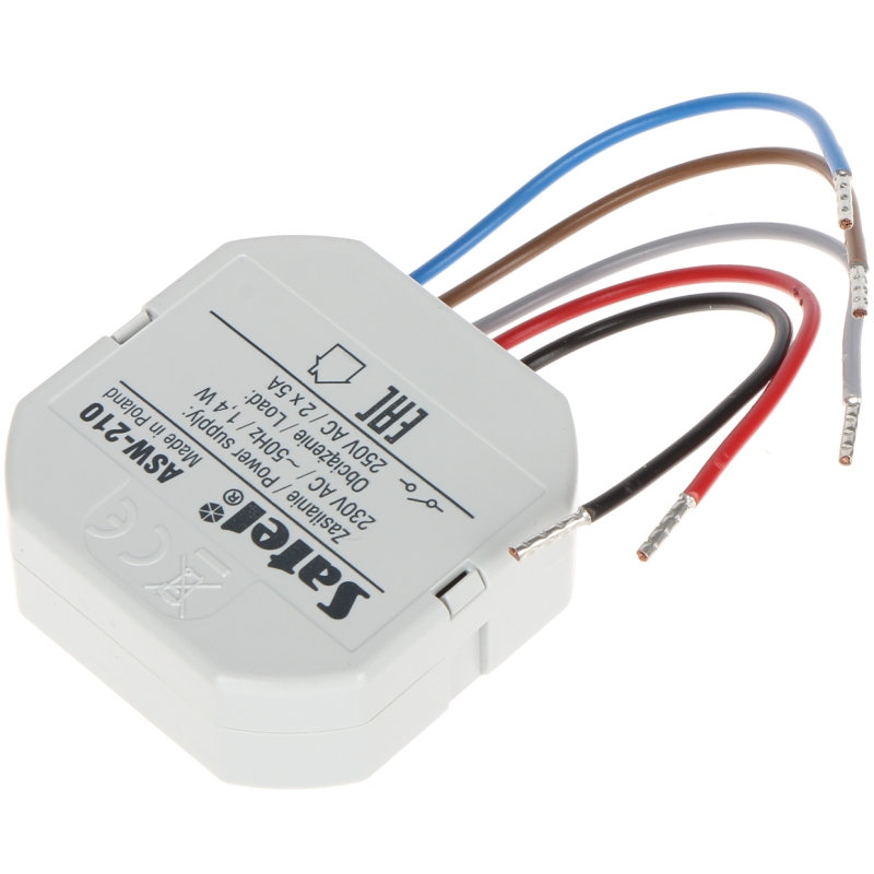 Az ASW-210 kis méretének köszönhetően egyszerűen beépíthető szabványos fali kötődobozba. A két bemenet lehetővé teszi mono- vagy bistabil fali kapcsolók csatlakoztatását, így rugalmas vezérlési lehetőségeket biztosít különféle alkalmazásokhoz.