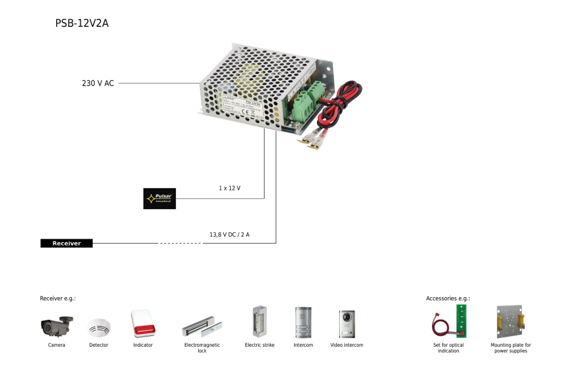 PULSAR Kapcsolóüzemű Tápegység Akkumulátortöltővel – 13.8 VDC / 2.5 A