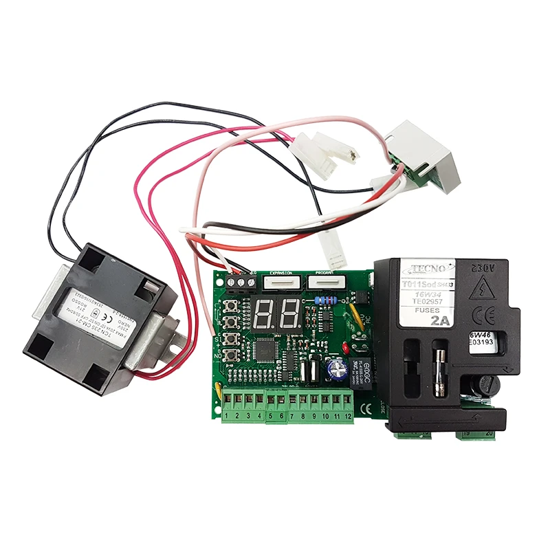 A TECNO TCT011S/NOD egy professzionális vezérlőegység, amelyet egyszárnyas vagy gördülő kapuk automatizálására terveztek. A készülék ideális választás lakossági, társasházi vagy ipari felhasználásra, ahol megbízható, sokoldalú és könnyen programozható vezérlésre van szükség. A vezérlőegység doboz nélküli kivitelben kerül szállításra, így szabadon kombinálható különféle szerelődobozokkal a telepítési környezet függvényében.