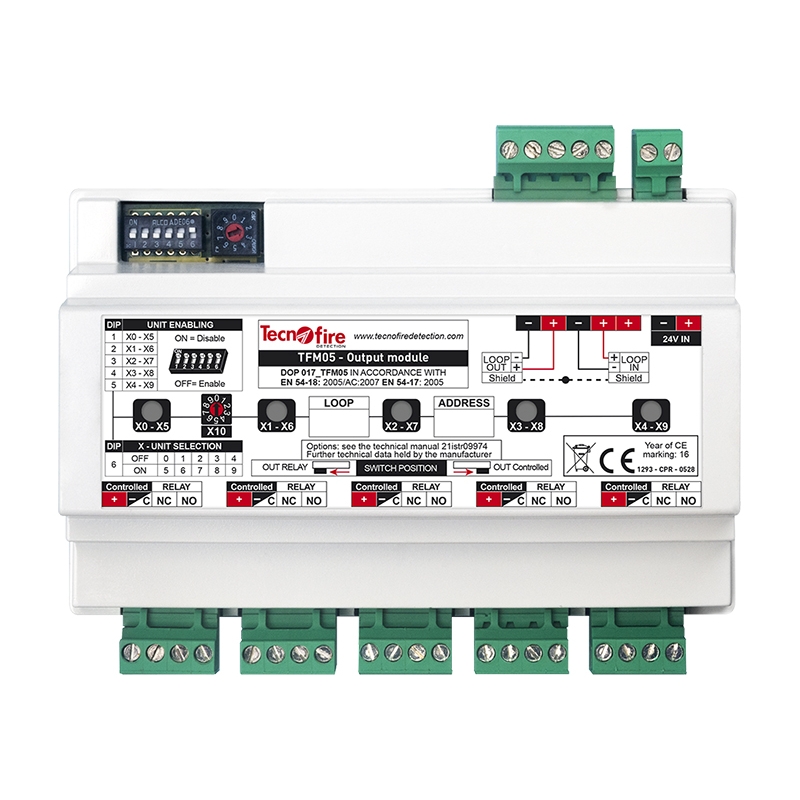 A TECNOFIRE címezhető modul egy professzionális tűzjelző rendszerkiegészítő, amelyet kifejezetten tűzvédelmi rendszerekhez terveztek. A modul fejlett funkcionalitása révén lehetővé teszi akár öt különálló fizikai vagy logikai egység felügyeletét és vezérlését, miközben teljes kompatibilitást biztosít a Fire-Speed protokollal.