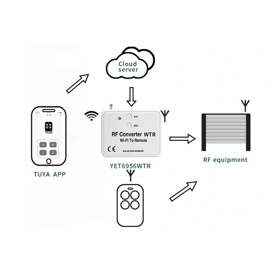 TIGERMAT Rádió Konverter - Univerzális, 2 csatornás 240MHz~930MHz vevő és adó, WIFI-s Tuya alkalmazással vezérelhető
