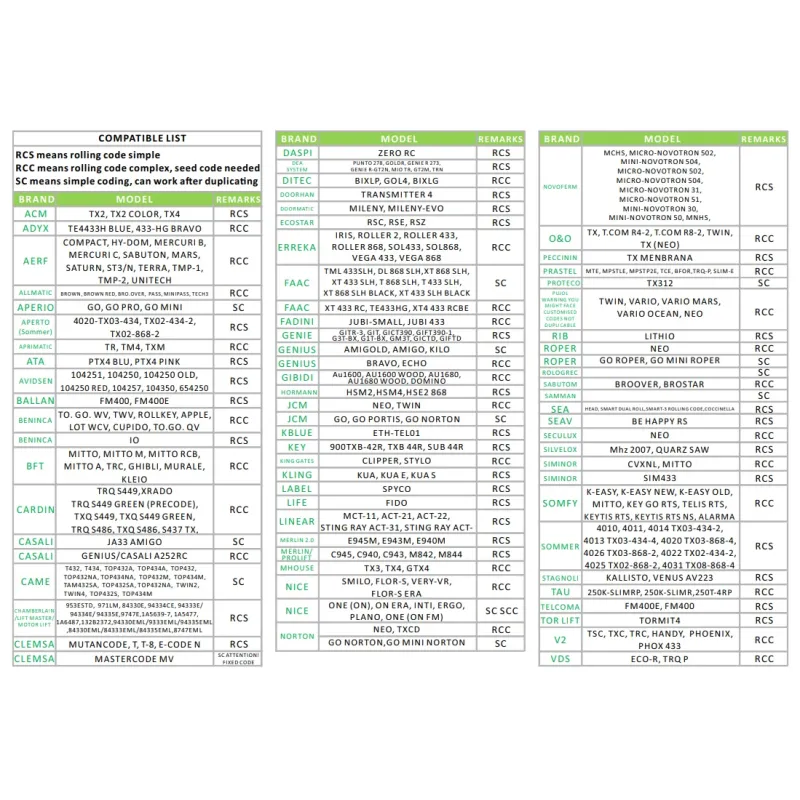- Kódmásolási funkció: Rögzített kód, tanulási kód, 60 gördülő kód/márka