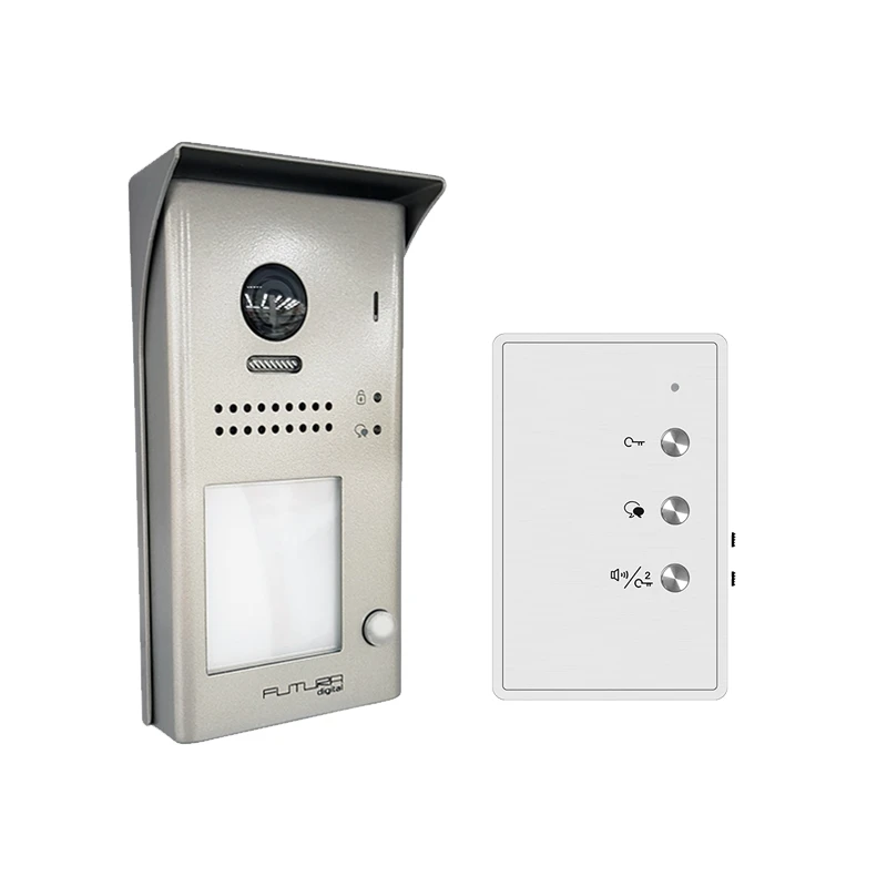 A FUTURA Kaputelefon szett ideális választás családi házak, kisebb irodák vagy üzletek számára, ahol fontos a biztonságos és kényelmes kommunikáció a bejáratnál. A 2 vezetékes kialakításnak köszönhetően a rendszer könnyen telepíthető meglévő infrastruktúrába is.