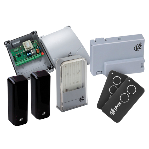 - 2 db XPHOX2 távirányító: Kétcsatornás, ergonomikus kialakítású távirányító, amely megbízható rádiófrekvenciás kommunikációt biztosít a vezérlőegységgel. Kiváló hatótávolság, gyors reakcióidő és biztonságos kódolás jellemzi.